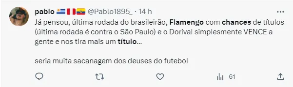 Segundo o jornalista, Tite disparou no jogo no vestiário contra o Vasco, isso aqui sobre o Brasileirão: “Agora Vamp, é informação tá! É informação. O Tite fala a todo instante para os jogadores, inclusive ontem no vestiário, acreditarem no título Brasileiro. E é óbvio, porque se você acredita no título, você acredita na Libertadores. Foi para a Libertadores, já é o objetivo. Agora não tá errado o Tite em pedir para acreditar”, enfatiza Thiago Asmar, conhecido como Pilhado.