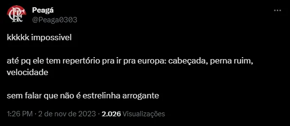“A informação que chega é que se o Gabigol não renovar com o Flamengo, o Flamengo vai tentar a contratação de Marcos Leonardo (…). Agora, se quiser o Marcos Leonardo: 30 milhões de euros”, disse em seu canal no YouTube.