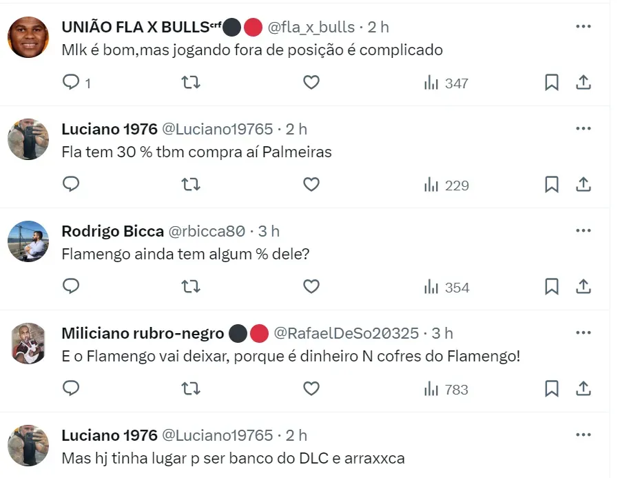 Nas redes sociais, especialmente no X (antigo Twitter), vários torcedores do Mengão se surpreenderam com a negociação. Muitos viam o rubro-negro como peça para permanecer em 2022, antes da venda para a Espanha.