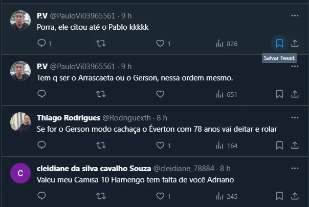 Ele ainda prosseguiu: “Tem o Gabi, que já tem a experiência, o próprio Bruno Henrique, o Pablo, que também tem uma liderança muito forte com a gente”, disse. Ele ainda mencionou Arrascaeta como uma das opções, mesmo com a postura mais calada do camisa 14.