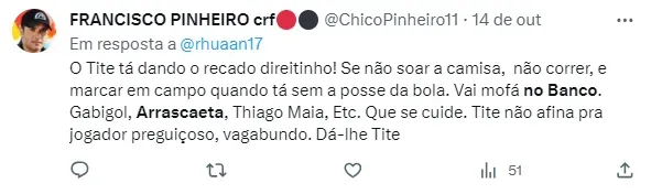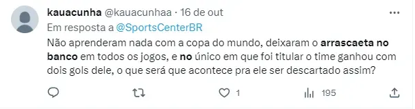 Neste meio tempo, entre a Copa do Mundo e as Eliminatórias, o Uruguai trocou de técnico, indo de Diego Alonso para Marcelo Bielsa, e Arrascaeta com a chegada de ‘El Loco’, continuou no banco. Além dos problemas físicos do meia, o que pode explicar a reserva no Uruguai talvez seja a forma que outros técnicos fora do Brasil, enxergam o papel do jogador de meio-campo em um jogo. Na Europa se prezam por jogadores combativos, com forte marcação, pressão, o que foge um pouco das características de Arrasca.