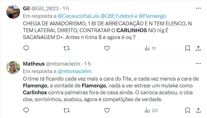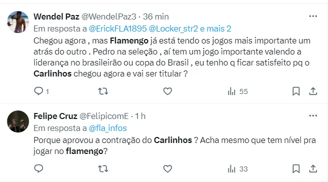 Mas para se firmar entre os reservas de luxo do Mengo, Carlinhos terá que mostrar mais do que vem mostrando em campo, para que seu nome, não seja facilmente descartado pelo torcedor Rubro-Negro.