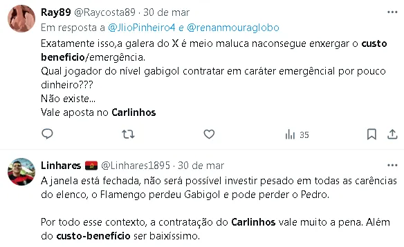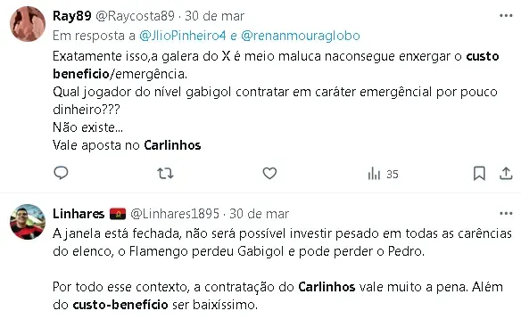 Você acredita que o atacante Carlinhos vá vingar no Flamengo?