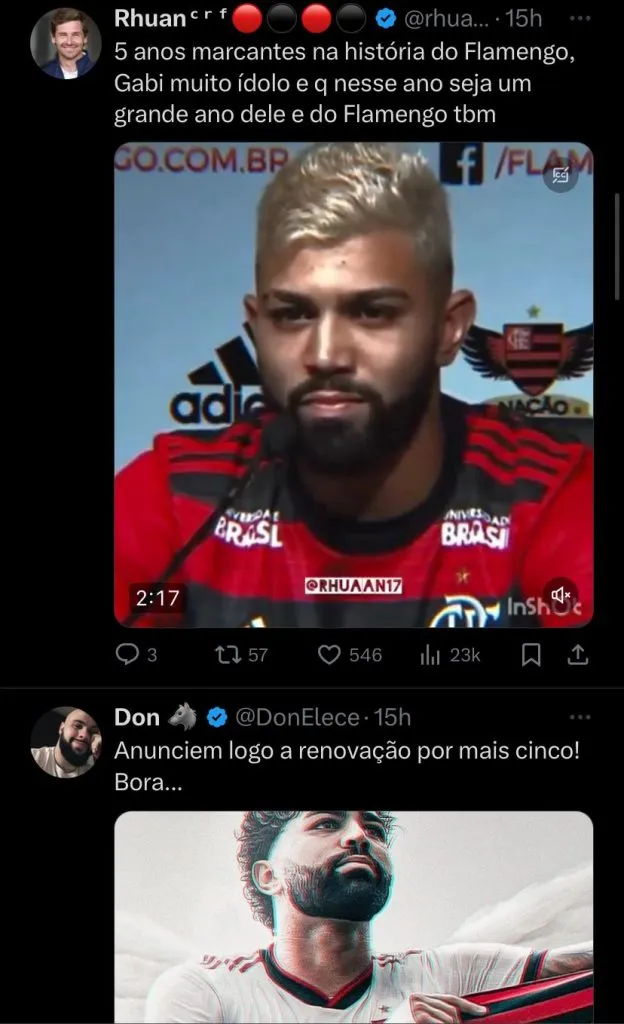 A cada título comemorado, a cada gol marcado, o Gabriel é muito Flamengo, ele faz parte da Nação que tanto o vangloria. Ele faz parte da maior torcida do Brasil. Ressalto: ao meu ver, a renovação está mais perto do que se espera, mas o anseio toma conta de todos.
