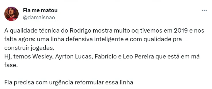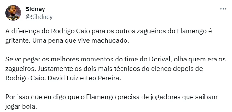Com a atuação, flamenguistas debateram a possibilidade de Rodrigo Caio seguir no clube em 2024. Para alguns, o melhor cenário é se o atleta aceitar um contrato por produtividade para ‘blindar’ o Fla das ausências do zagueiro.