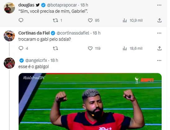 Muito se falava sobre o encontro de Tite e de Gabigol, pois quando o treinador ainda comandava a Seleção Brasileira, o atacante embarcou nos cantos da torcida quando conquistou a Copa Libertadores “tirando onda” contra Tite. “Ô, Tite, vai se fud, o Gabigol não precisa de você”. O camisa 9 ainda falou: “Eu já jogo em uma Seleção, por”. Vale lembrar que o ídolo flamenguista não foi chamado para participar do elenco que foi para a Copa do Mundo do Catar.