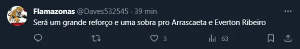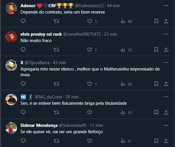 Como não vem tendo grandes oportunidades em solo europeu, o jogador estaria disposto a retornar ao país e o Mengão aparece como grande opção. Vale frisar que a renovação de Éverton Ribeiro ainda não foi sacramentada e ambos atuam na mesma função. Assim, com o nome do meia em alta, alguns torcedores do Fla foram às redes sociais dar o “aval” para a contratação, mas para ser reserva.