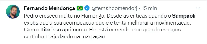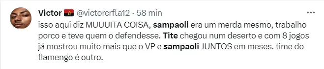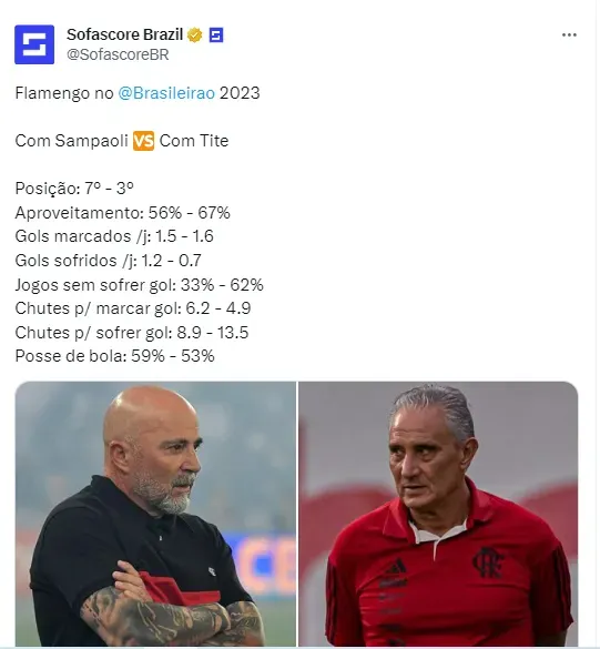 De lá para cá foram mais quatro vitórias, um empate e duas derrotas. Desde a saída de Sampaoli à chegada de Tite no Mengão, o clima mudou drasticamente, inclusive com jogadores os comparando e dizendo sobre o lado mais ‘humano’ de Tite.