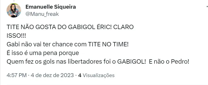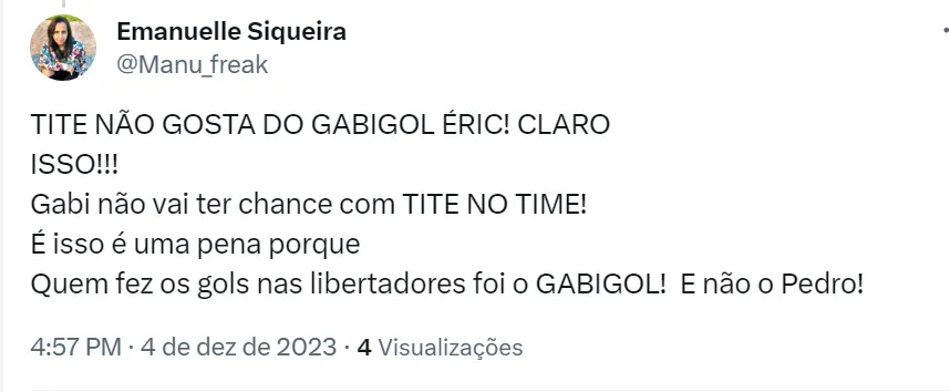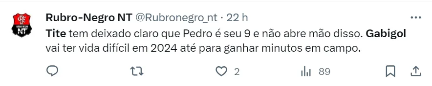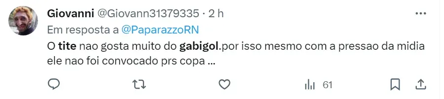 O treinador do Flamengo não fala publicamente, mas é inegável que Gabigol não é o jogador dos sonhos do treinador. Nem quando o camisa 10 vivia grande fase no Flamengo, Tite chamou o jogador para a Seleção Brasileira.