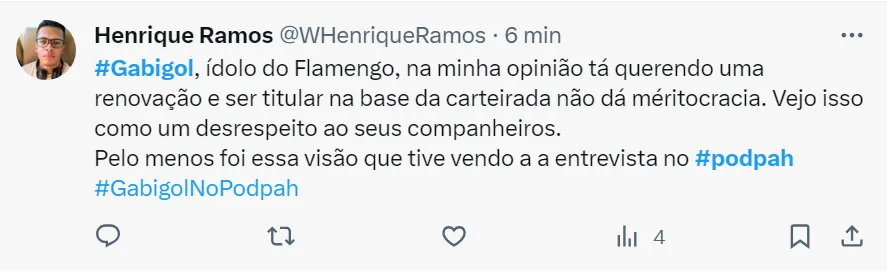 Na entrevista ao Podpah, Gabigol ainda cita que não ficou na Inter de Milão e no Benfica por causa que vinha recebendo poucos minutos em campo. A permanência do atacante no Fla passa por ter mais oportunidades.
