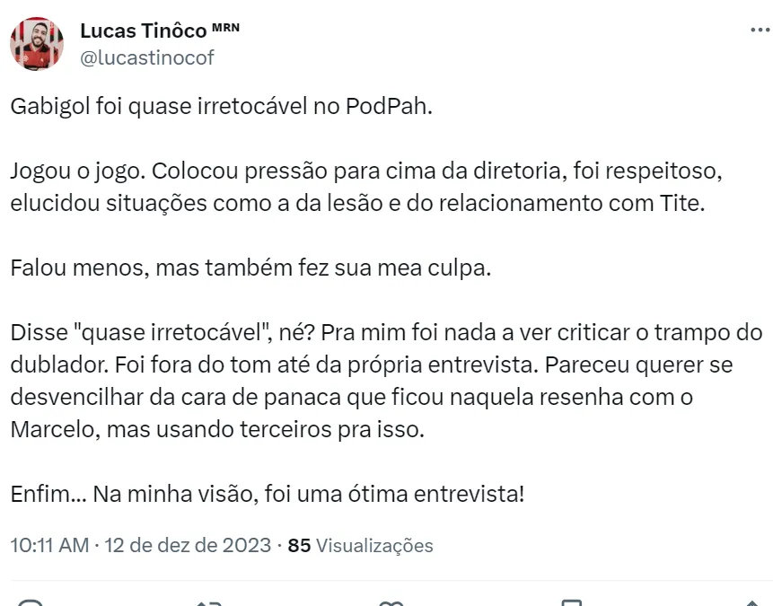 Na última segunda-feira (11), o camisa 10 do Flamengo foi no Podcast do PodPah e aumentou as especulações sobre uma possível saída. Ele deixou aberta a possibilidade de vestir a camisa do Corinthians no futuro.