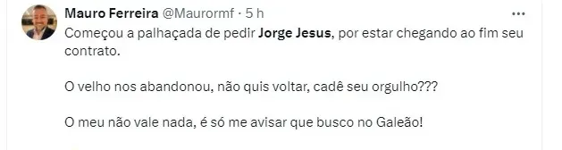 O treinador português, marcou época no futebol brasileiro. Ele saiu do clube carioca com mais vitórias do que títulos. Porém, mesmo com o futuro indefinido no Al-Hilal a contratação de Jesus seria financeiramente impossível para o Flamengo.