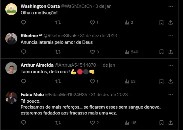Até o momento, o Flamengo anunciou a chegada de De La Cruz e também a de Ainoã, que será integrado na categoria de base do Mengão. Dessa maneira, algumas posições são prioridades do clube.