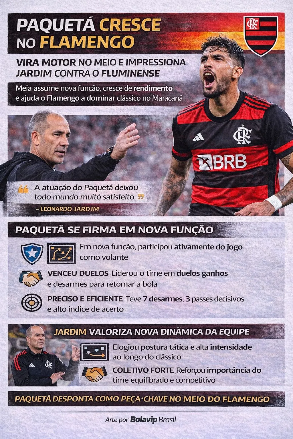 Com o resultado, o Flamengo ganha confiança para a sequência da temporada e vê em Lucas Paquetá uma peça cada vez mais importante. A tendência é que o jogador siga sendo utilizado na nova função quando necessário, ampliando suas possibilidades dentro do elenco e fortalecendo o meio-campo rubro-negro.
