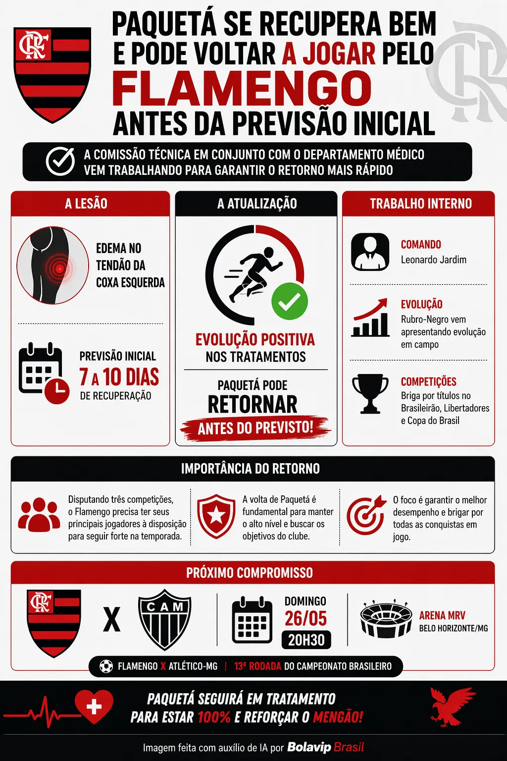 Conforme informações exclusivas do Bolavip, Lucas Paquetá vem conseguindo apresentar uma evolução nos tratamentos e pode voltar a ficar à disposição de Leonardo Jardim antes do previsto.