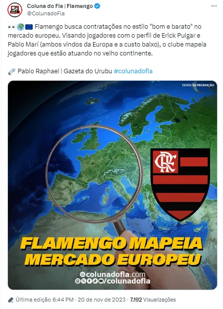 De acordo com o jornalista Pablo Raphael, da Gazeta do Urubu, o clube carioca quer priorizar contratações de custo benefício na Europa, em movimentações comparáveis as vindas de Erick Pulgar e Pablo Mari.
