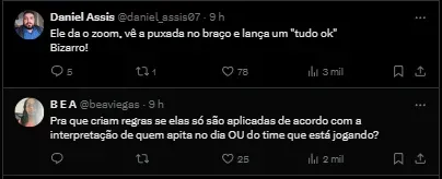 Por outro lado, ele também analisou o lance em que o VAR recomendou que Paulo Cesar Zanovelli retirasse o cartão vermelho do zagueiro Luan Cândido. Em sua análise, ele concordou com a decisão.