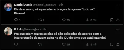 Porém, neste jogo, outra reclamação da torcida flamenguista foi por conta da arbitragem da partida. As queixas seriam devido a dois lances durante o jogo.