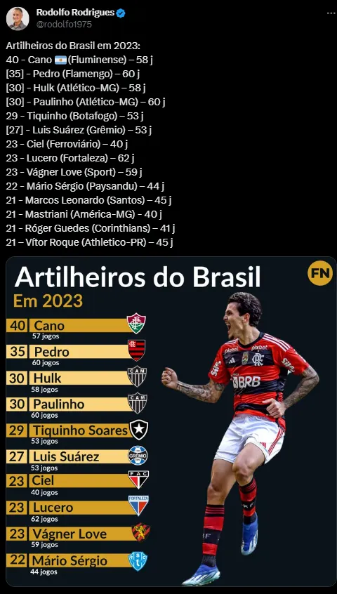 O jornalista que tem especialidade no clube rubro negro, afirma que em uma temporada repleta de desafios e cenas inusitadas, o jogador superou as adversidades e vive sua temporada mais artilheira, com impressionantes 35 gols em 60 jogos, resultando em uma média superior a um gol a cada duas partidas.