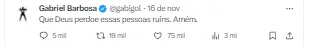 A postagem foi para parabenizar o aniversário do Rubro-Negro Carioca. Após toda a repercussão negativa que deu o que falar, o atacante se posicionou sobre o ocorrido. Ele usou uma famosa frase de outro jogador importante do Fla, Adriano Imperador. “Que Deus perdoe essas pessoas ruins. Amém”.