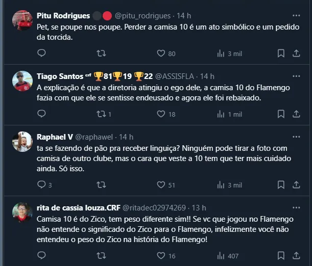 Isto é, além de levar uma multa depois da reunião de sexta-feira (17), ficou decidido também que o atacante não utilizará mais a camisa 10 da Gávea. A definição incomodou Petkovic, ex-meia e ídolo do torcedor flamenguista. Inclusive, ele se manifestou sobre: