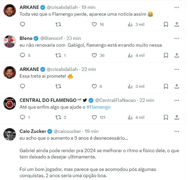 De acordo com informações do jornalista Diogo Dantas, do O Globo, que faz a cobertura diária do Flamengo, o grupo político FLAFUT defende que o clube não renove com Gabigol além do mandato do presidente Rodolfo Landim, no fim de 2024.