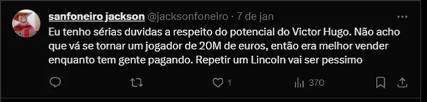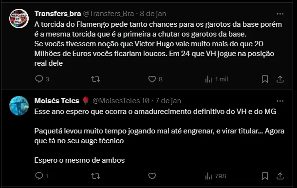 Essa opção pode ser Victor Hugo, jovem meio-campista de apenas 19 anos. Em 2022, o atleta subiu para o profissional do Flamengo, onde ganhou oportunidades durante as duas temporadas no time principal.