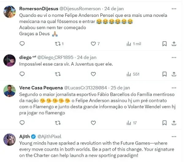 “Os jogadores formados em clubes brasileiro quando vem para a Europa, acompanham e sonham em voltar. Voltar e poder ajudar o clube novamente”, iniciou ele, falando sobre um retorno ao futebol brasileiro, antes de concluir: