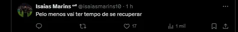 Vamos aguardar a atualização sobre a situação do jogador. Vale lembrar que as competições irão parar devido à Data Fifa e as partidas entre as seleções nacionais.