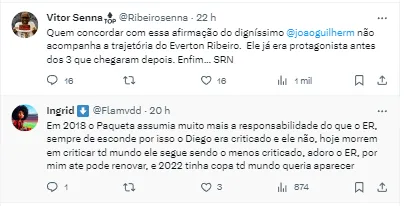 Em entrevista ao “Tropa Podcast”, nesta quinta-feira (16), João Guilherme deu sua opinião sobre a renovação de Éverton Ribeiro. O apresentador e narrador não vê o meia como protagonista da equipe e discorda do termo “Quarteto Mágico”. Para o debochado, é trio mágico! Concorda?… pic.twitter.com/A6xm2CMGda