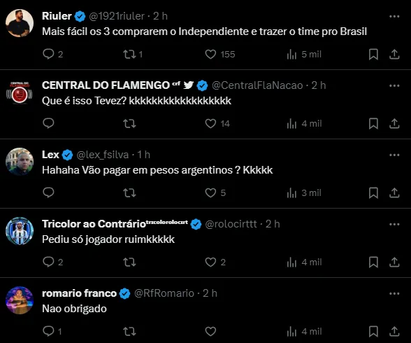 “Nós pedimos (Varela), mas as negociações com os clubes brasileiros são muito difíceis pelos altos contratos que eles pagam. Temos que ser cautelosos e ver até onde podemos ir”, disse Tévez, em declaração dada à Tyc Sports, um dos maiores veículos da Argentina.