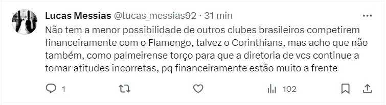 A principal questão é que essa falta de premiação acabasse prejudicando a equipe financeiramente e impactasse na busca por reforços no próximo ano. Mas, apesar do ano em baixa, o Flamengo deve superar no fim do ano a maior receita da história do futebol brasileiro, que atualmente pertence ao próprio Clube.