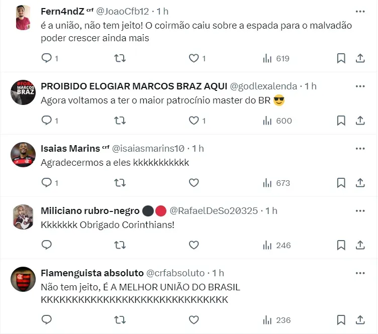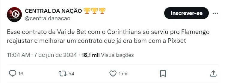 Com isso, a Nação apontou que apenas o Rubro-Negro conseguiu ser beneficiado com essa negociação. Já que o patrocínio do Timão era o maior da história, a equipe carioca conseguiu a valorização junto a PixBet, aumentando o ganho com um patrocínio que já estava fechado.