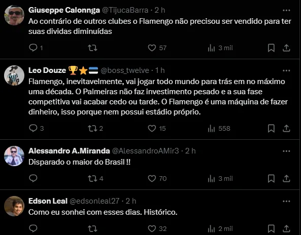 Nas redes sociais, os flamenguistas mostraram que gostaram dos números apresentados e deram valor sobretudo a redução da dívida da gestão de Rodolfo Landim e a alta cúpula.