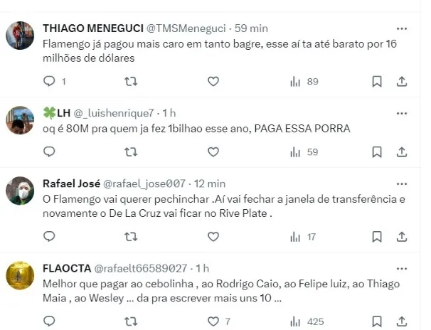 Nesses moldes, a diretoria do Flamengo não deve investir no atleta, ficando realmente nas tratativas de De La Cruz, com o River Plate. Além disso, um outro nome pinta como segunda opção.