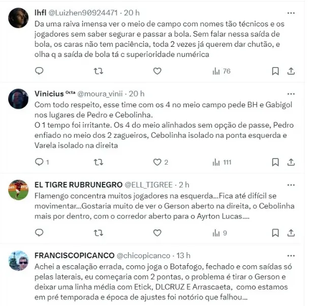 “Nesse momento, eu estou titular, assim como os meus companheiros, porque é uma concorrência muito forte. Isso só quem tem a ganhar é o Flamengo e nós mesmos, porque acaba elevando o seu nível, seu nível técnico, seu nível físico, então sempre a gente vai estar nos 100% e só o clube tem a ganhar com isso”, finalizou Everton Cebolinha.