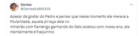 Vale citar que na última Copa do Mundo, o treinador, que na época comandava a Seleção Brasileira, optou por levar Pedir em vez de Gabigol para a competição mundial de seleções nacionais. Agora, mais uma vez, Gabi foi preterido para Pedro.