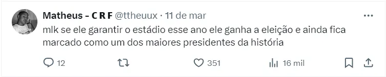 A diretoria vem buscando elevar o nível da equipe e, para isso, vem trabalhando para fortalecer o Rubro-Negro dentro e fora de campo. Já que a gestão vem buscando a construção do estádio próprio da equipe.