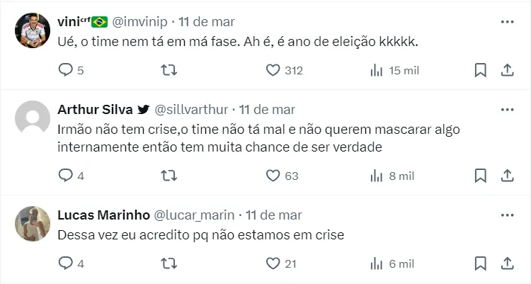 A intenção é manter uma equipe forte e com bons jogadores para reposição, já que o Campeonato Brasileiro é longo, além de ter várias competições entre eles. Por conta disso, o treinador destacou a importância de ter um bom elenco.