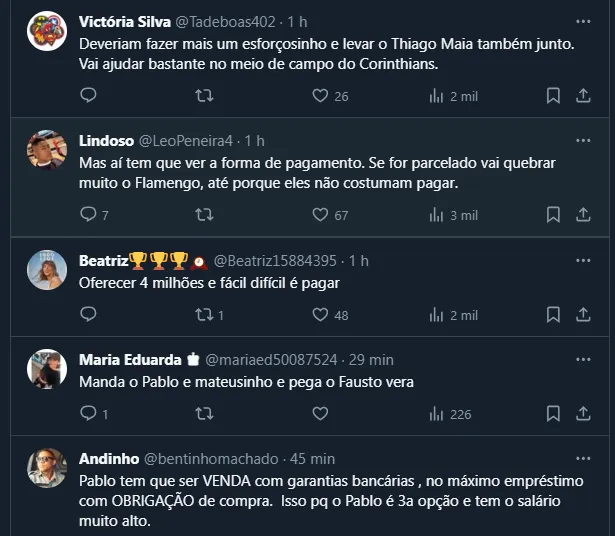 Já no que diz respeito ao zagueiro Pablo, a intenção do Corinthians é tentar um empréstimo junto ao Mais Querido, já que o seu vínculo vai até o fim de dezembro de 2025, ou seja, mais dois anos.