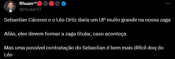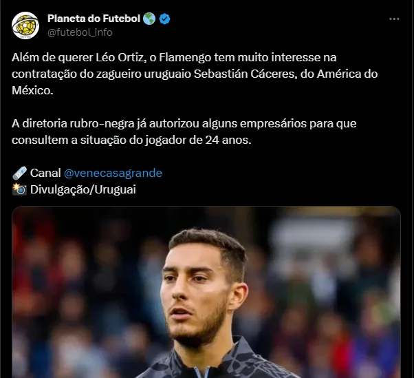 O novo alvo do Fla para a próxima temporada é o zagueiro Sebastián Cáceres, de 24 anos, que atua no América (MEX). O uruguaio é um dos pupilos de Bielsa e fez uma grande partida contra a Argentina, anulando Messi nas Eliminatórias.