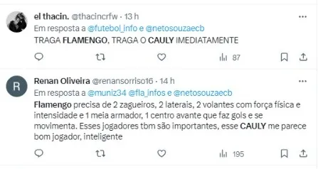 De acordo com informações publicadas pelo site FogãoNet, Cauly, do Bahia, que tem sua SAF controlada pelo Grupo City, estaria na mira do Mais Querido. Além dos cariocas, Botafogo e Palmeiras também estão no páreo.