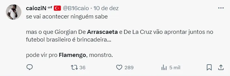 Um dos principais jogadores do elenco e o que a gestão tem mais dificuldade de buscar por reserva à altura no mercado, Arrascaeta vem causando preocupação nos bastidores. Isso porque, com o interesse da Arábia Saudita, que tem um poder aquisitivo muito alto, a diretoria teme perder o jogador.