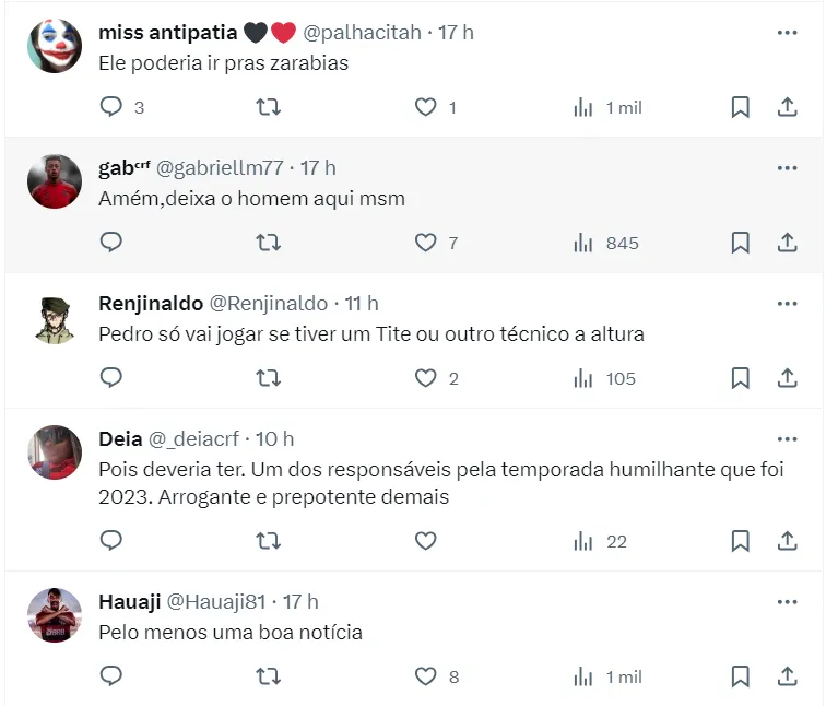 A multa contratual de Pedro para o exterior é de 60 milhões de euros, R$ 317 milhões na cotação atual. Vale destacar que com a chegada de Tite no Rubro-Negro, Pedro se tornou titular da posição, colocando Gabigol no banco. Com isso, acabou se tornando o homem de confiança do novo comandante, se consolidando de vez no Flamengo.