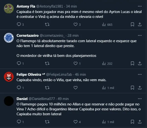 Entretanto, como o Red Bull Bragantino é um clube estável financeiramente, as negociações devem se estender ao longo dos próximos dias. Vale frisar que, olhando de maneira separada, a proposta por Capixaba é na casa dos 6 milhões de euros.