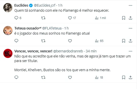 Sendo assim, se for desejo da cúpula flamenguista reforçar o setor, terá que ir atrás de outro nome, por enquanto. Entretanto, o Clube Carioca não vem demonstrando interesse em qualificar a lateral-direita e vem focando em outras posições.