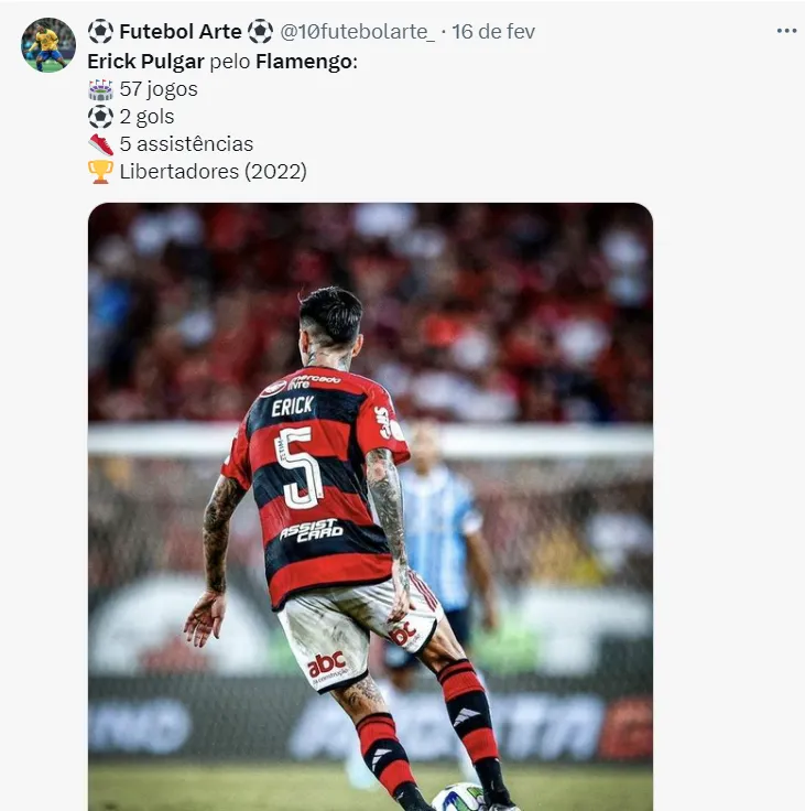 Buscando se respaldar, outro jogador terá valorização no elenco, diante do que vem apresentando em campo. Erick Pulgar demonstrou evolução sob o comando de Tite e será recompensado para que sua permanência seja garantida na equipe.