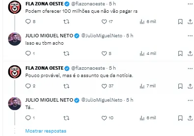 Porém, é válido ressaltar que o jornalista Venê Casagrande, já havia informado que o Flamengo não pretende se desfazer de seu craque facilmente e, muito menos, para um rival brasileiro. A ideia é não reforçar adversários.