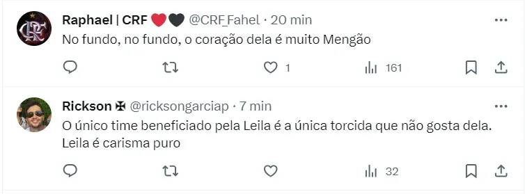 Além do desempenho da equipe em campo, outra coisa acabou surpreendendo no confronto. A presidente Leila Pereira foi tietada pela torcida do Flamengo, onde chegou a atender alguns torcedores tirando fotos. Mas, o que surpreendeu foi a audácia dos Rubro-Negros.