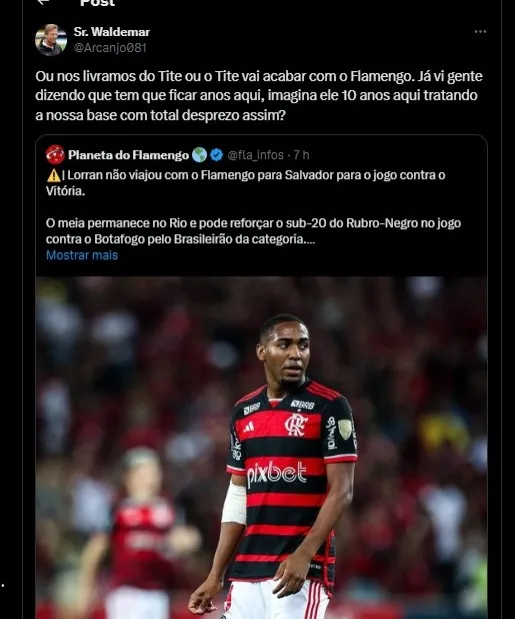 Confira a seguir as críticas dos torcedores do Flamengo às escolhas do técnico Tite na temporada.